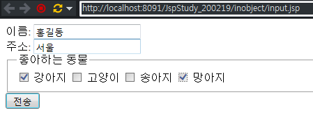 input.jsp 페이지에서 체크박스로 데이터를 전송하고