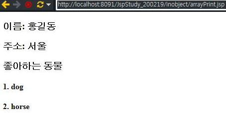 arrayPrint.jsp 페이지에서 데이터를 배열로 처리하는 예제