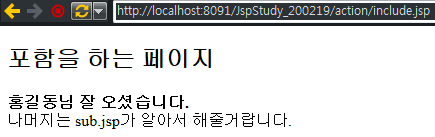 또한 include 액션 태그의 URL만 표시되면서 다른 페이지를 처리하기 때문에