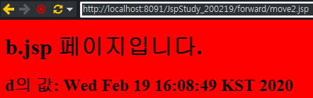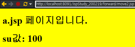 프로그램 제어를 b.jsp로 이동(포워딩)시킴 - b.jsp 페이지 수행