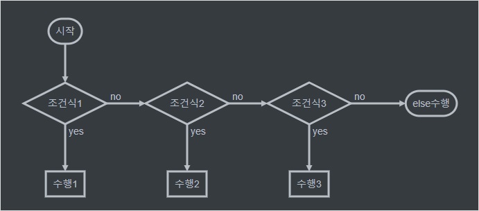 if문 중에서도 else if문의 활용이 가장 많기 때문에 순서도를 통해서 어떤 식으로 함수의 흐름이 제어되는지 파악해야합니다.